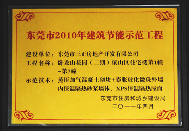 三正地產(chǎn)積極相應(yīng)國家政策,在商品房物業(yè)的打造上,嚴(yán)把規(guī)劃設(shè)計(jì)與工程施工關(guān),結(jié)合國家對房地產(chǎn)設(shè)計(jì)行業(yè)規(guī)劃、設(shè)計(jì)方面新的要求,推進(jìn)建筑環(huán)保節(jié)能,并取得了不俗的成績。其中,三正臥龍山依山居1~7幢因采用蒸壓加氣混凝土砌塊+膨脹玻化微珠外墻、內(nèi)保溫隔熱砂漿墻體、XPS保溫隔熱屋面等新型環(huán)保節(jié)能材料,被評為“東莞市2010年建筑節(jié)能示范工程”,獲得政府表彰與嘉獎。